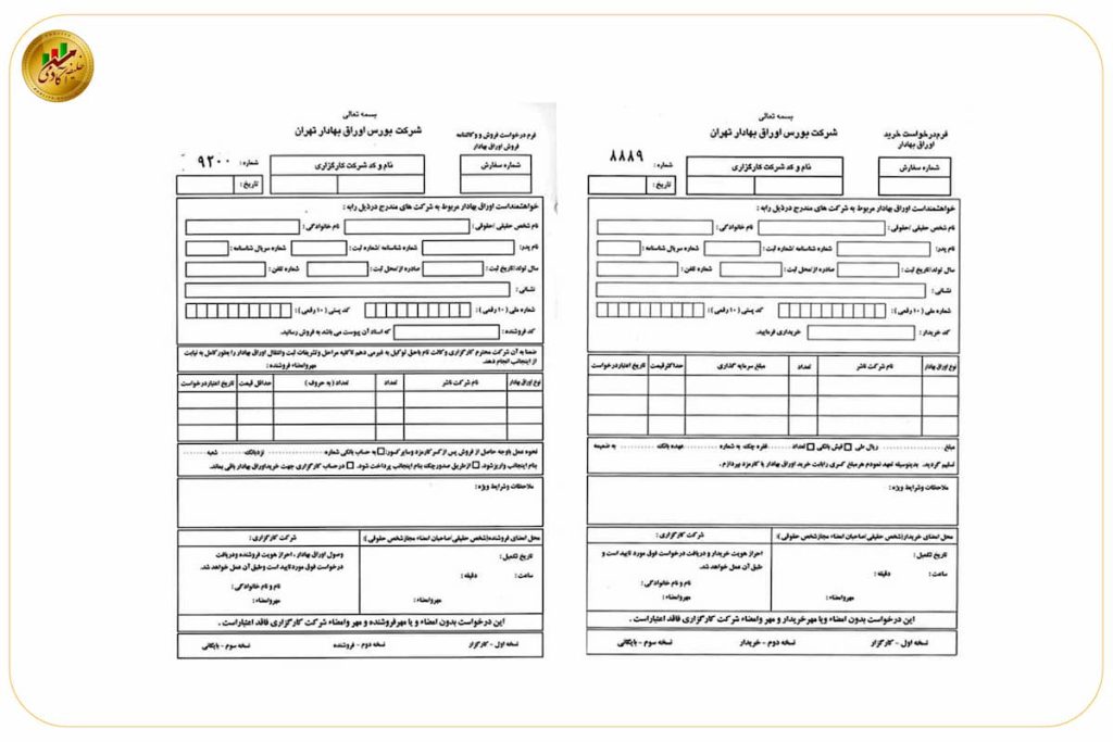 - مراجعه به کارگزاری بصورت حضوری و تکمیل فرم سفارش فروش یا خرید سهام